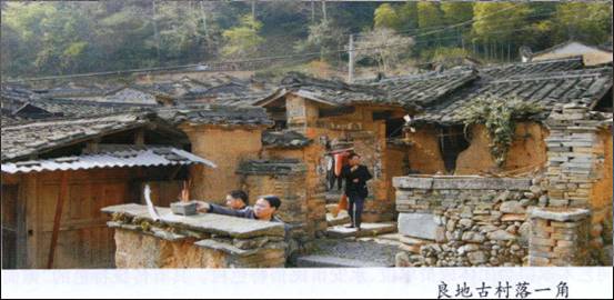 将乐县万全乡良地村客家古村落现存建筑建于清乾隆年间至道光年间(1736~1850),现存客家围屋有18座,占地7000多平方米。其中6座宅院属客家围龙屋。此宅院整体呈前方后圆,即在殿堂式宅屋后面加建半月形围墙屋。各宅院皆有前、后厅和两侧厢房,为单檐穿斗架构,有的厅有小阁楼。后围墙屋有厨房、谷仓、杂物间等。宅院四周围墙皆为骑缝砖式墙体,当地人称土固墙。